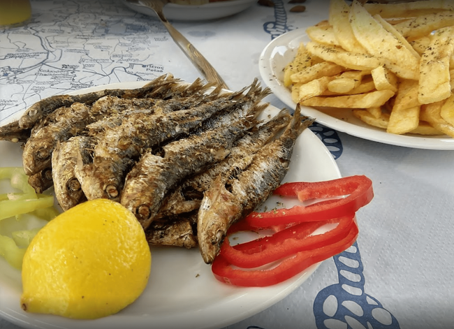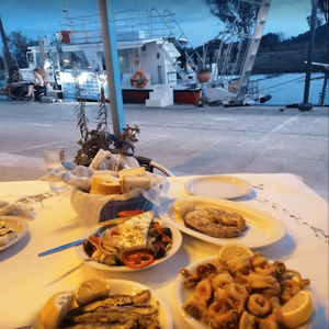 This is an authentic fish taverna! No classic Menu list. You deal directly with the Cooker, and at the same with the Fisherman. Very friendly, delicious food, good wine, beautiful ambience and good value for money.